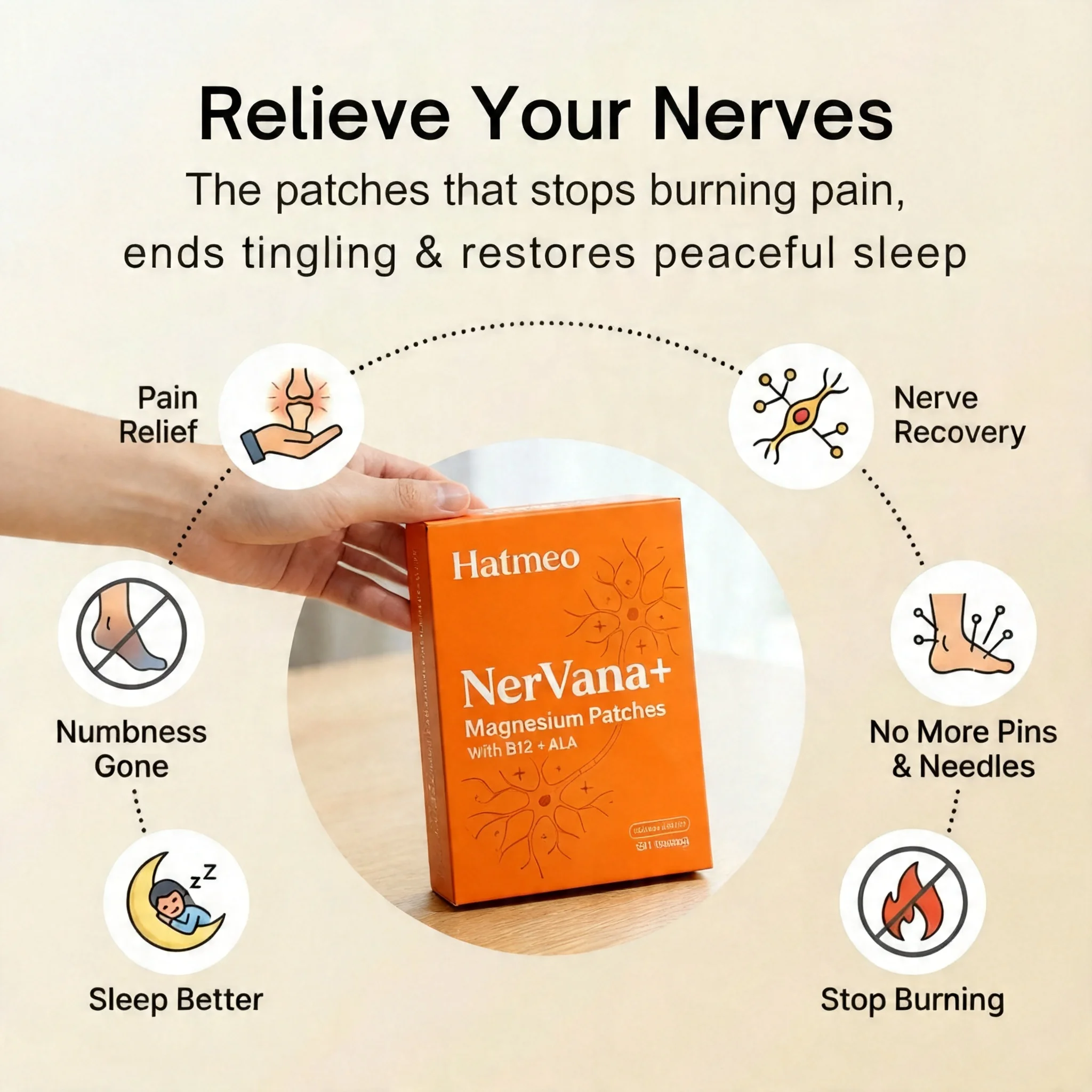 Hatmeo NerVana+® Nerve Relief Magnesium Patches – 8-10 Hour Relief for Neuropathy Burning, Tingling & Sleep