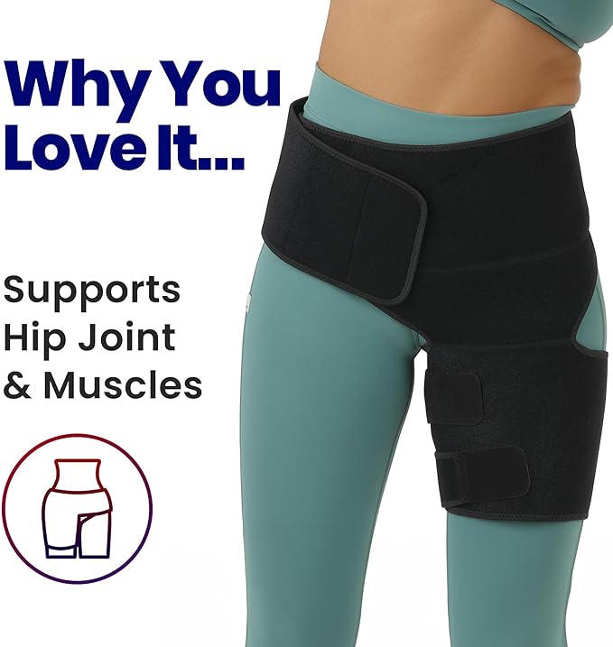 My wife bought this for me as I suffer from mild to several hip/sciatic pain. Due to hip dysplasia and Pao surgery at 14 I still have significant pain at times. I twisted my hip somehow a couple times this week and this plus my compression knee brace have helped me so much. I highly recommend this product. I've seen some ppl complain it's difficult to put on without help, but it's really easy. If you have trouble with the Velcro on the leg part just fold it over on itself while you do the hip part first. This keeps the Velcro from sticking to everything so you don't struggle. I wear this when gaming, exercising, and walking for short/long periods of time. It doesn't reduce pain completely, and I didn't expect it to, but it helps enough that I don't feel like I'm limping as badly after long periods of time