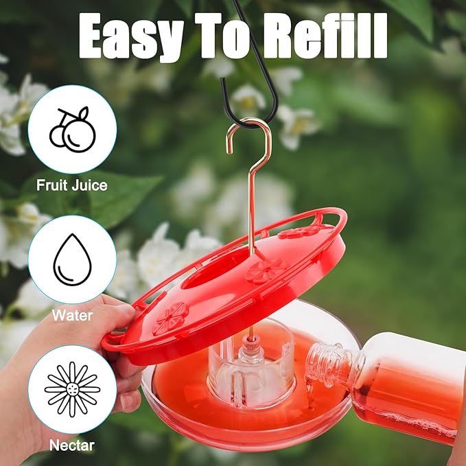 Hatmeo Hummingbird Feeders for Outdoor 5 Feeder Ports Ant Bee Proof Leak-Proof