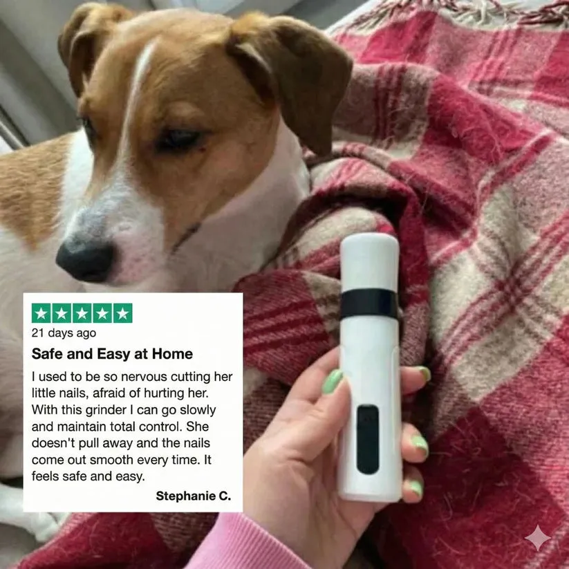 I was nervous to try trimming at home, but this tool made it surprisingly easy. My dog just sat on my lap and let me finish without fuss, which never happened with clippers. It’s quiet, gentle, and I actually feel safe using it. Seeing how calm he stayed gave me so much confidence—now I don’t dread nail trims anymore.