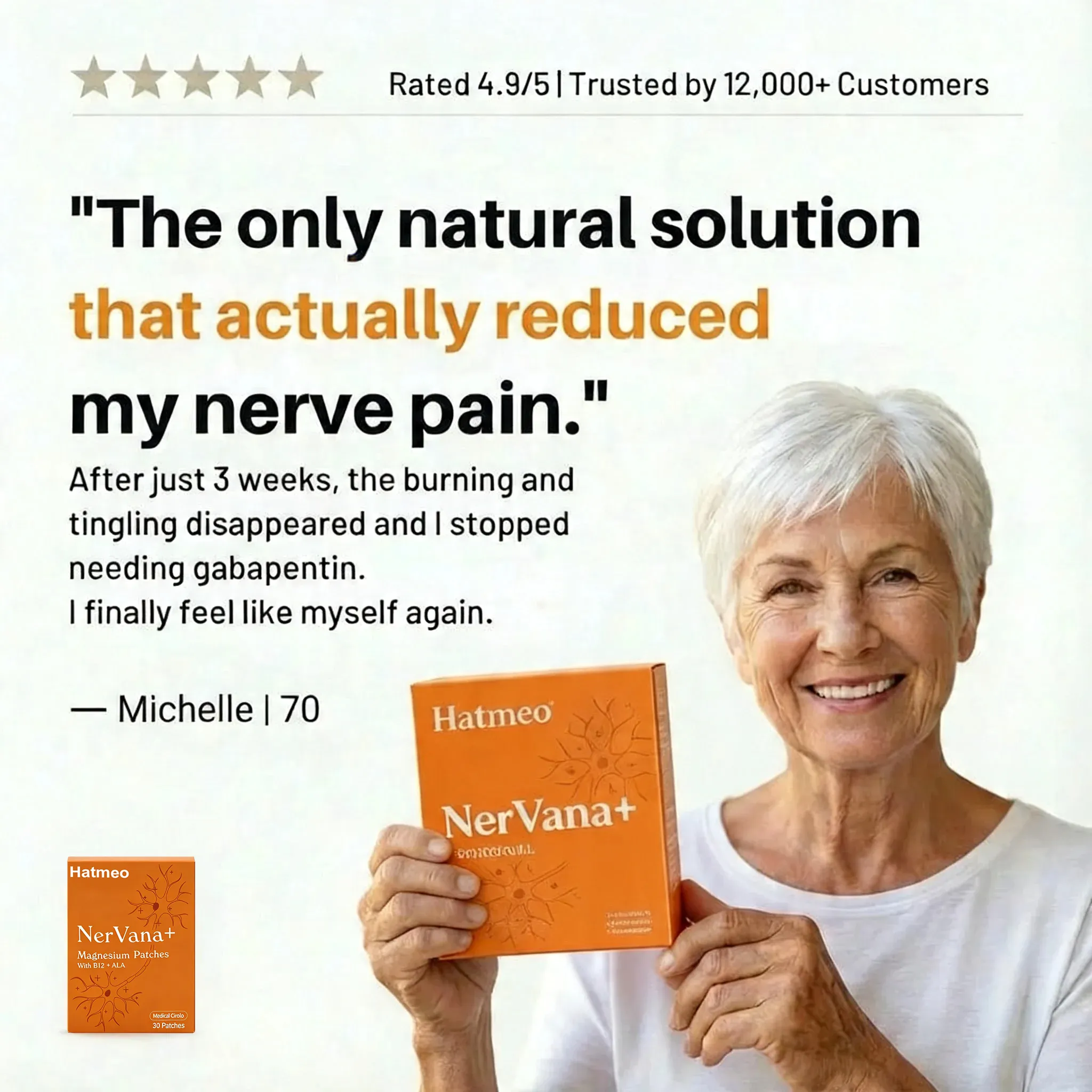 AQY Hatmeo NerVana+® Nerve Relief Magnesium Patches – 8-10 Hour Relief for Neuropathy Burning, Tingling & Sleep